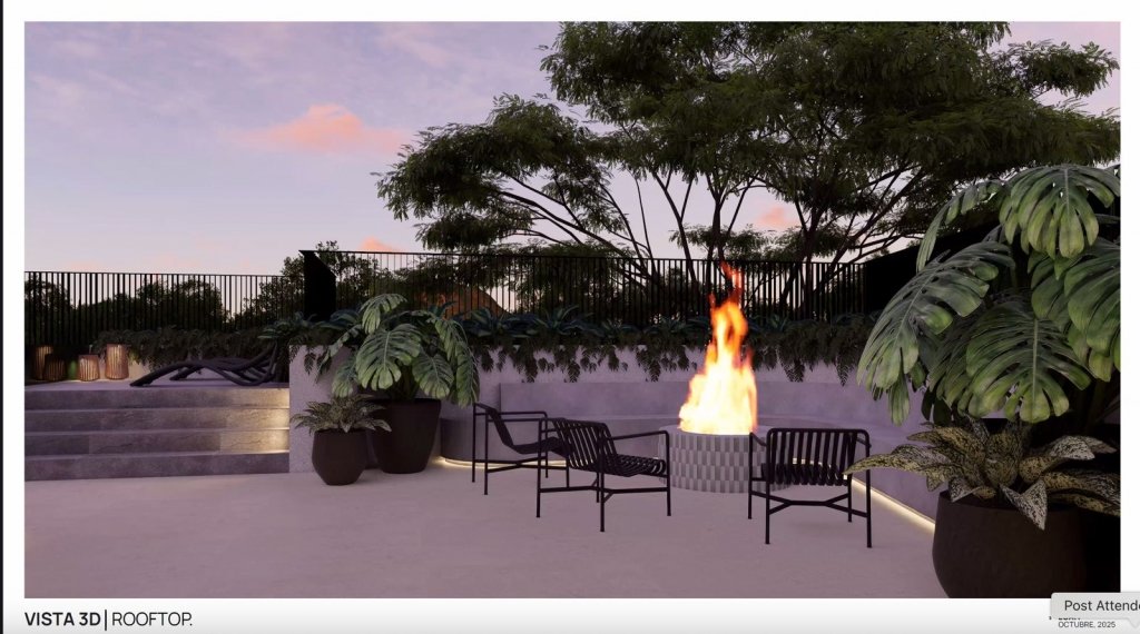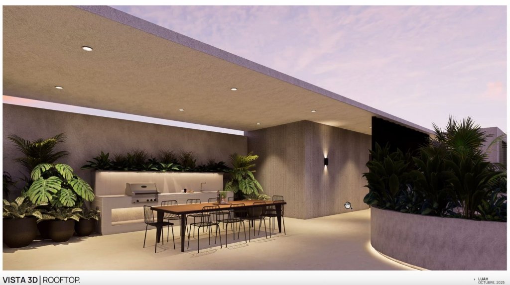Como parte del proyecto, los residentes disfrutan de amenidades exclusivas como lobby de diseño moderno, gimnasio, lounge social, terrazas con áreas para reuniones, rooftop con piscina, área de BBQ y espacios para relajación, creando un estilo de vida integral dentro del condominio.