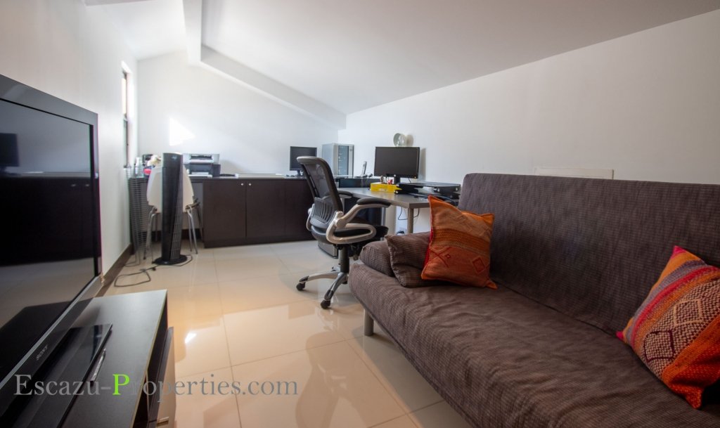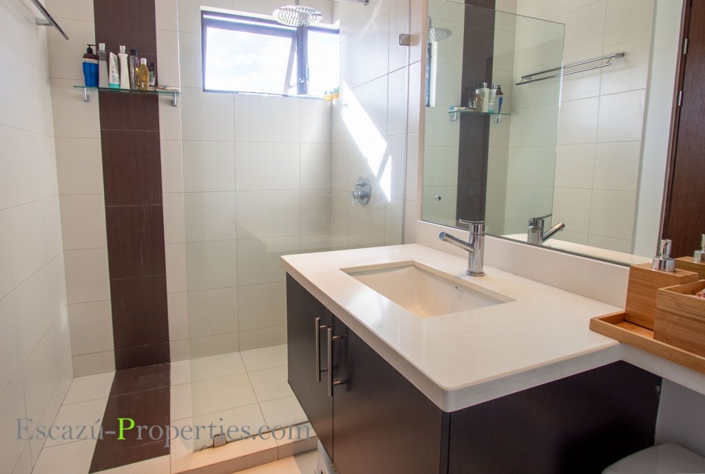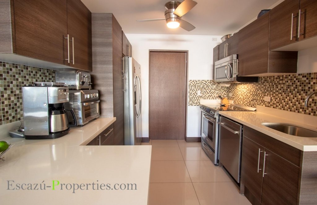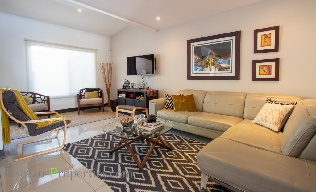 El primer nivel, también cubierto por porcelanato, con un espacio abierto para sala y comedor y con salida al patio trasero, donde hay una zona el verde linda para tomar el sol y privada, pues está bordeada por muro perimetral. Una parrilla es una exclent4e opción para este espacio también, pues está próxima a la cocina, que es, probablemente, la parte más linda y elegante de la casa, pues tiene un enchape en la pared, back splash colorido, brillante, y que entona perfectamente con los colores de la madera de los muebles y el color crema de los sobres en cuarzo. https://escazu-properties.com/