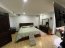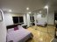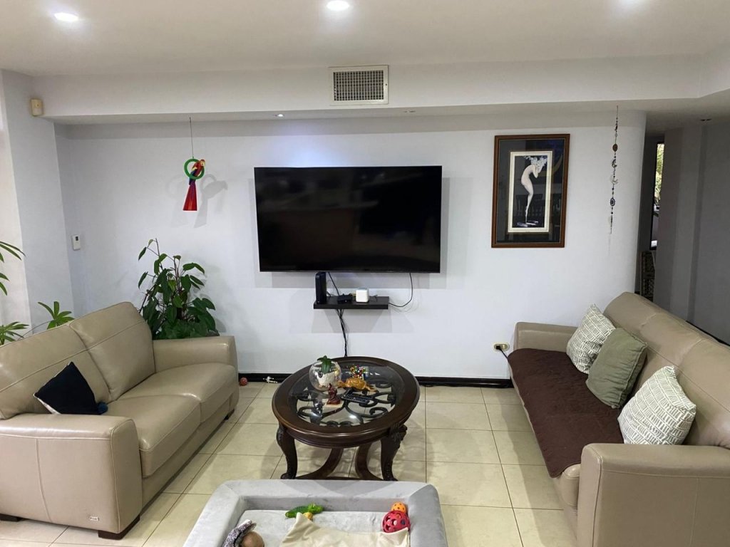 Su salón principal es el corazón de la vivienda, un área abierta que integra sala, comedor y cocina bajo un concepto moderno que favorece la movilidad y la convivencia. El contraste de paredes blancas, rodapiés en madera oscura y pisos de porcelanato en excelente estado aportan elegancia y luminosidad a cada rincón.