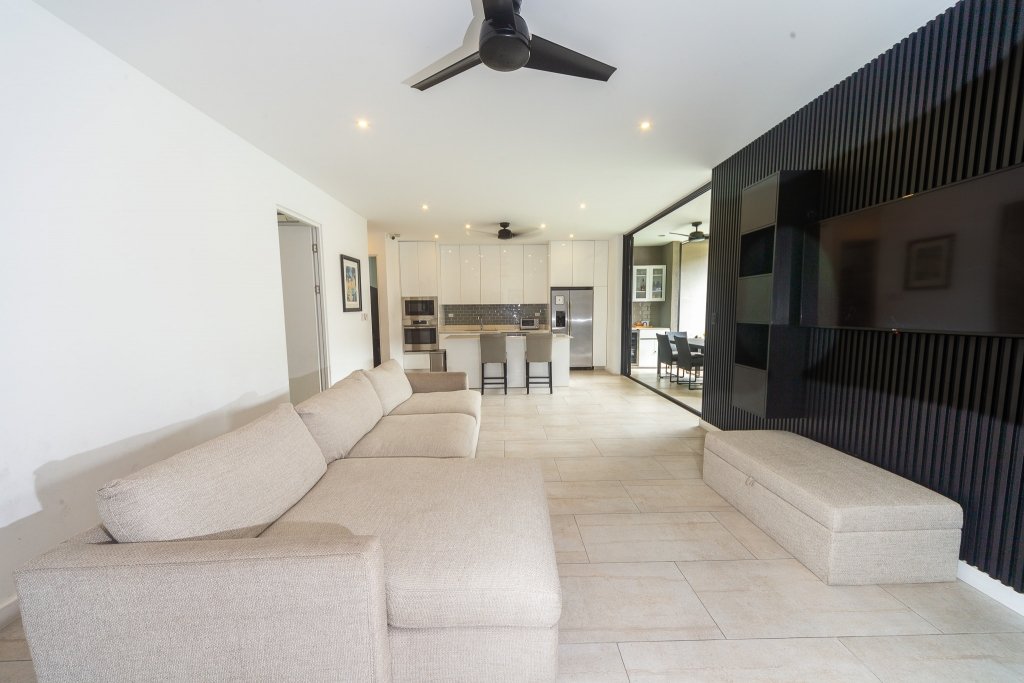 La casa cuenta con 253 metros cuadrados de construcción y 282m2 de terreno distribuidos en un solo nivel. Desde el primer momento, destaca la amplitud del área social del primer piso, donde sala, comedor y cocina se integran en un concepto abierto con mucha iluminación natural. Los ventanales corredizos permiten que el jardín forme parte del ambiente interior, brindando una conexión perfecta con la naturaleza.