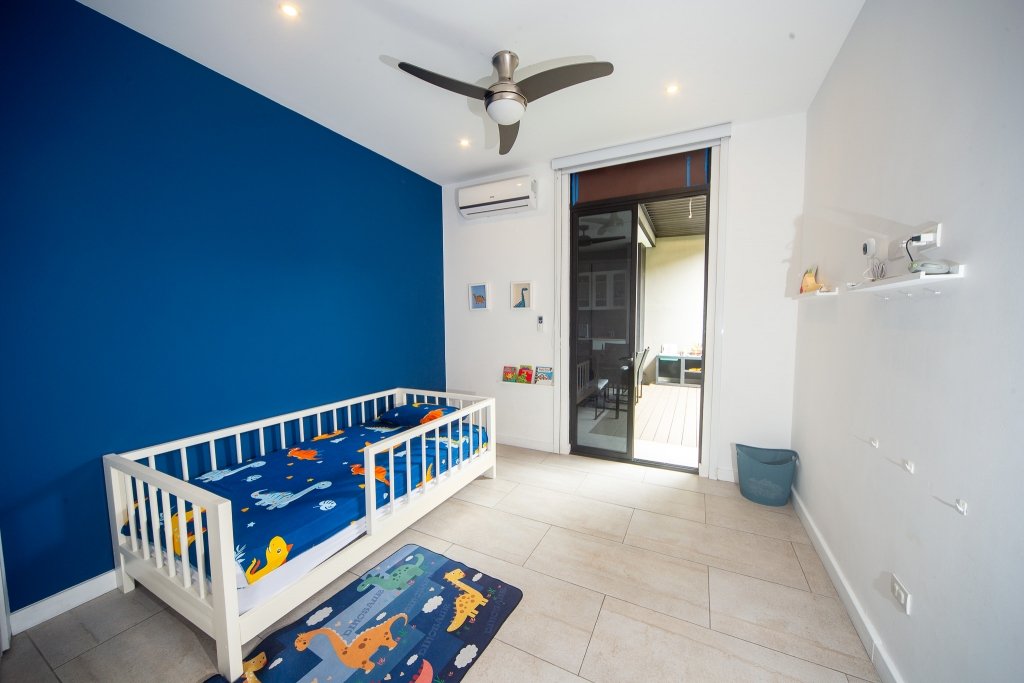 Esta residencia es perfecta para familias grandes gracias a sus 4 habitaciones, una de ellas es un flex space, cuarto de juegos, oficina, para mayor conveniencia. Las habitaciones destacan por su gran tamaño y su excelente iluminación natural además de que cuentan cada una con baño completo. El dormitorio principal cuenta con baño privado y lavamanos doble, una ventaja que brinda orden y mucha privacidad, está equipada con abanicos marca hunter en todas las áreas y unidades de a/c en las habitaciones incluyendo el flex space, blackouts en las habitaciones, polarizado para seguridad y control de la temperatura ,cedazos para mosquitos, lavandería y habitación de servició con baño completo.