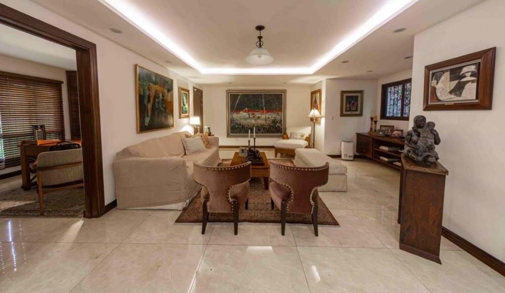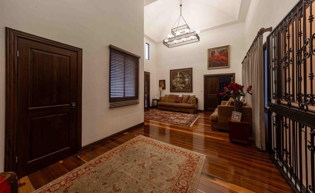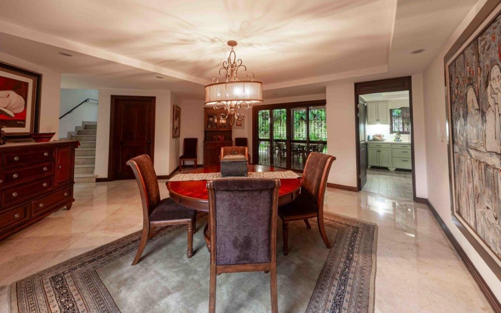 La casa es de dos niveles y tiene una construcción de 448 m². Su diseño combina lo clásico con lo funcional, logrando espacios amplios y muy cómodos. La sala y el comedor son independientes, lo cual muchas personas valoran, y ambos destacan por su tamaño y buena iluminación. Los pisos de porcelanato con un leve brillo se ven elegantes y combinan muy bien con las paredes claras y los detalles en madera.Casa Clasica Moderna Villa Real Santa Ana