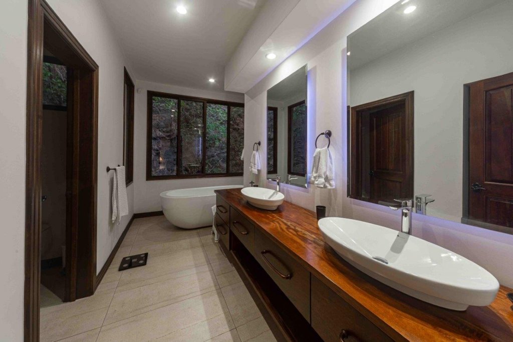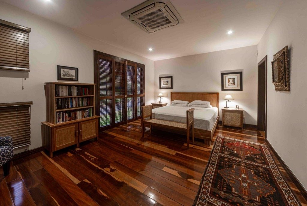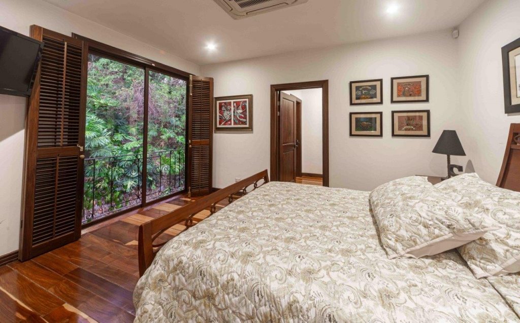 Las habitaciones son bastante amplias, todas con piso de madera y baño privado. La principal es especialmente cómoda, con bañera, buen espacio de clóset y ventanales corredizos que permiten disfrutar de la vista al jardín.
