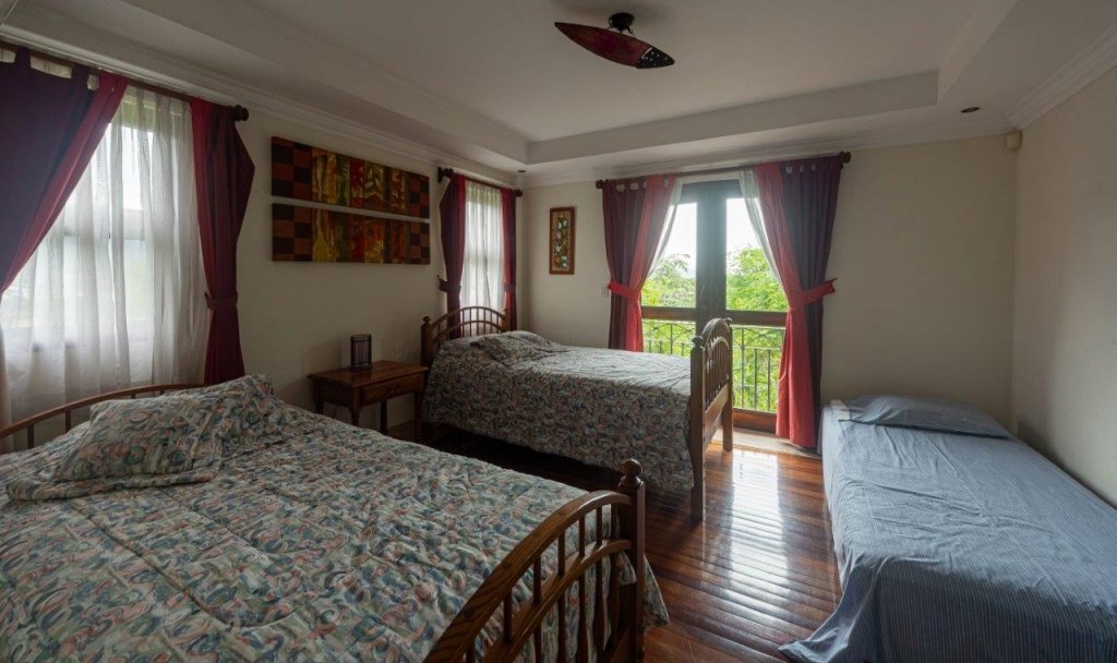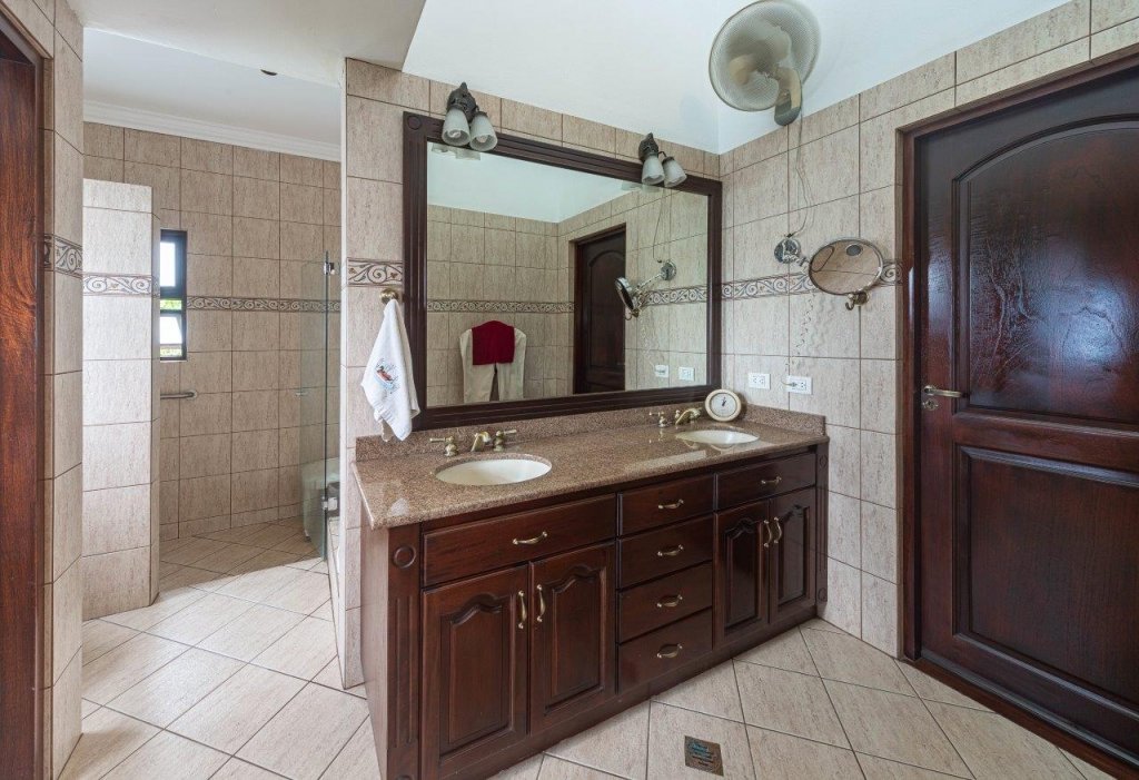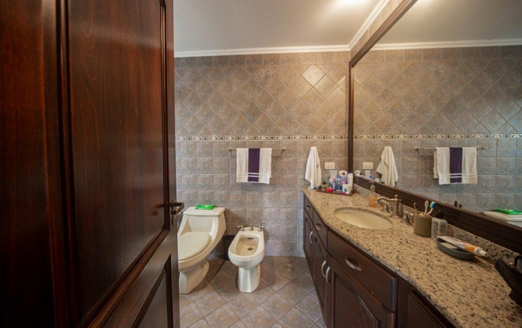 La casa cuenta con cuatro habitaciones, una de ellas ubicada en el primer nivel para mayor comodidad, y tres en la planta alta, todas con su propio baño. La habitación principal destaca con un baño elegante que incluye tina estilo jacuzzi.