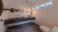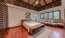 Esta Casa con vista Villa Real Santa Ana, Costa Rica, tiene en el primer nivel un dormitorio master, bellísimo, con cielos en caña brava, puertas corredizas en vidrio para salir directo al corredor interno y muy cerca de la piscina, pero muy privado, Acondicionado con unidad mini split de aire, abanico en cielo que está cubierto por caña brava y decorado con vigas expuestas en madera y piso en madera sólida. Walk in closet y cuarto de baño con doble lavamanos sobre un mueble de madera y ducha con pared en piedra laja amplio, abierto con mucha luz natural. Hay una oficina, sala de TV y medio baño para visitas con piso en piedra, muy particular.