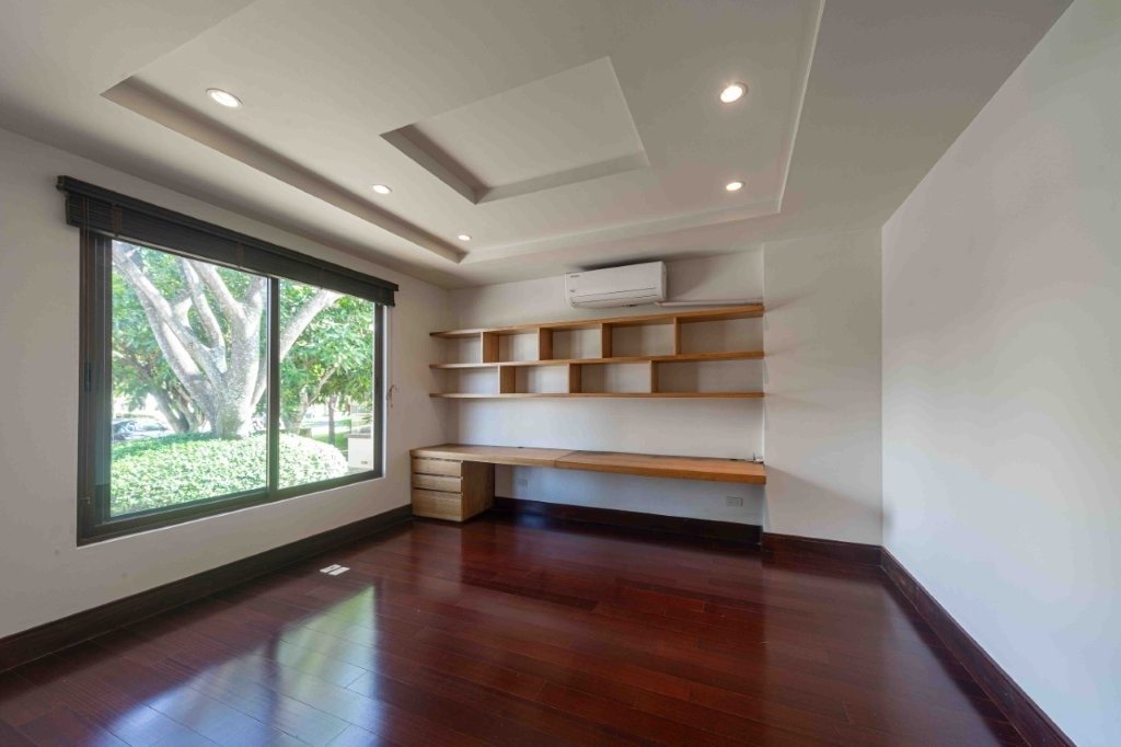 En cuanto a las habitaciones, la distribución es muy cómoda tres en la primera planta y dos en el segundo nivel. Todas tienen piso laminado con un acabado elegante, y la mayoría cuenta con su propio baño y walking closet ya equipado con muebles de madera. El dormitorio principal es amplio y muy agradable, con un baño que incluye una tina ubicada junto a un ventanal, ideal para relajarse con vista al entorno verde y con total privacidad.