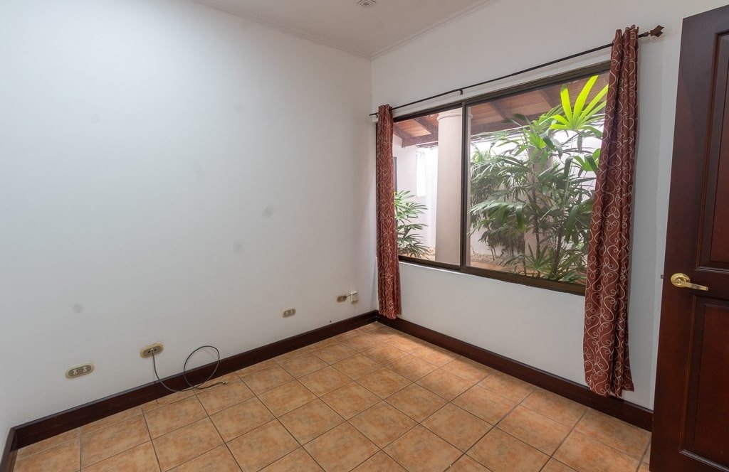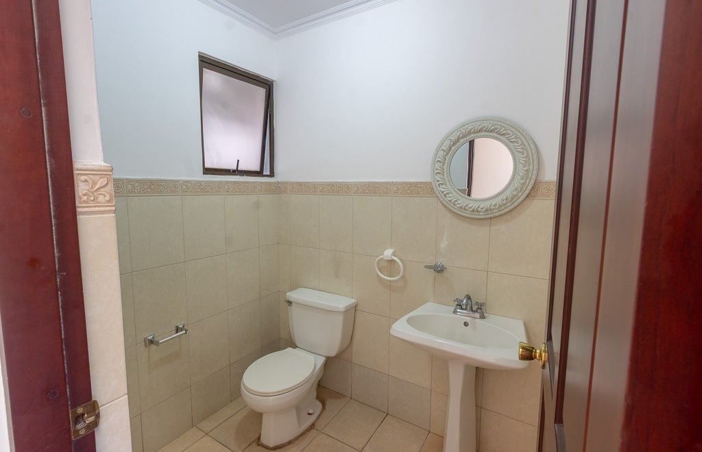 La casa dispone de tres habitaciones, cada una con baño privado, brindando independencia y confort a todos sus ocupantes. La habitación principal destaca por su tamaño, iluminación y la vista directa al jardín, creando un espacio íntimo y relajante.