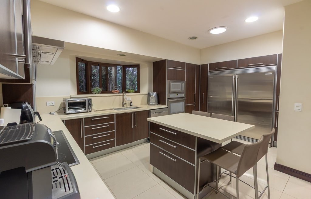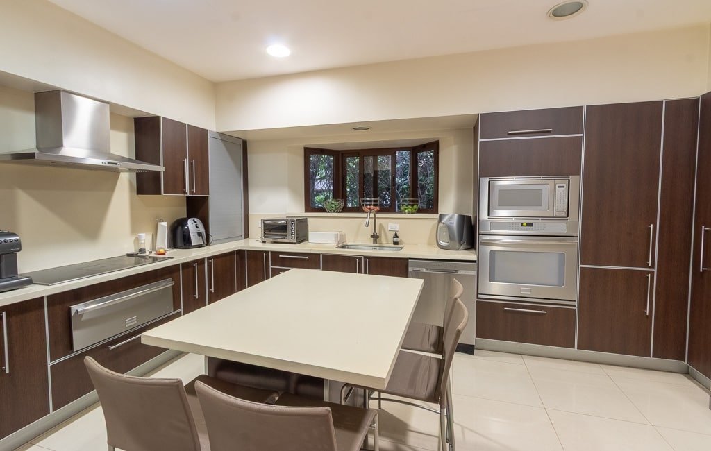 La propiedad cuenta con tres amplias habitaciones en el primer nivel, cada una diseñada para brindar comodidad y privacidad, con pisos de mármol que aportan frescura y sofisticación a todos los ambientes. Los baños son modernos, con acabados de alta calidad y un estilo más contemporáneo que resalta la elegancia de la casa. La cocina, separada, ha sido remodelada con un diseño actual y funcional, equipada con mobiliario de primera y detalles que la convierten en el corazón del hogar.