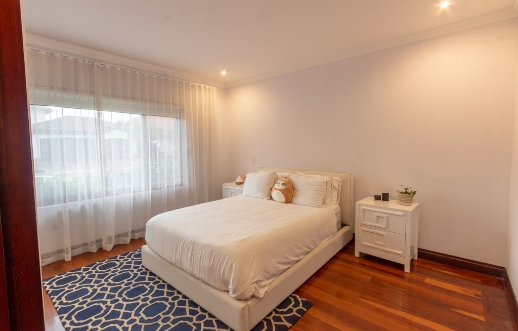 Ubicada en el prestigioso condominio Bosques de Lindora, esta espectacular residencia combina elegancia, amplitud y un diseño arquitectónico pensado para el confort familiar. Se trata de una casa de un piso con un segundo nivel que incluye una habitación adicional con baño completo y una oficina privada, ideal para quienes buscan un espacio versátil para teletrabajo, huéspedes o mayor independencia.