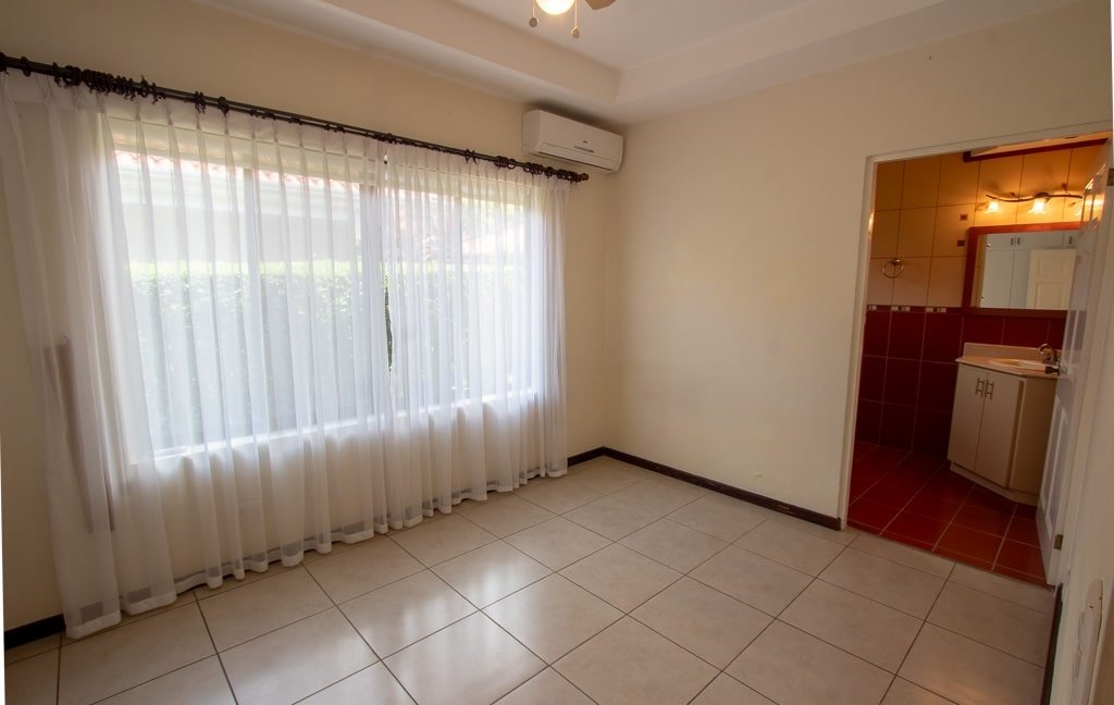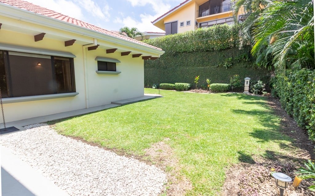 En la parte trasera, la propiedad cuenta con un amplio jardín que invita al descanso y a la vida al aire libre, ideal para disfrutar de la tranquilidad, el clima de Santa Ana y actividades familiares. Además, dispone de parqueo para cuatro vehículos, lo que aporta comodidad y funcionalidad.