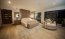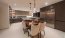 El salón principal es un espacio abierto y acogedor, dominado por una chimenea empotrada que aporta calidez y elegancia. Aquí, la sala, el comedor y el bar se conectan naturalmente bajo un mismo concepto, facilitando la convivencia y el entretenimiento. Muy cerca se encuentra la cocina, que cuenta con una isla que hace las veces de desayunador, amplias líneas de apoyo en melamina gris y encimeras de cuarzo.