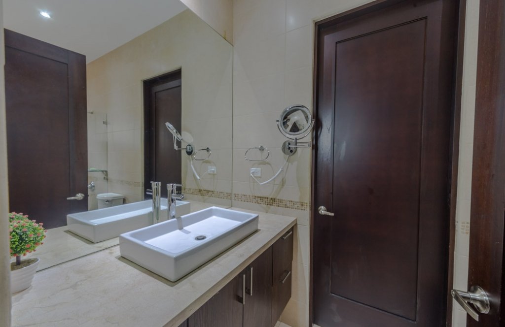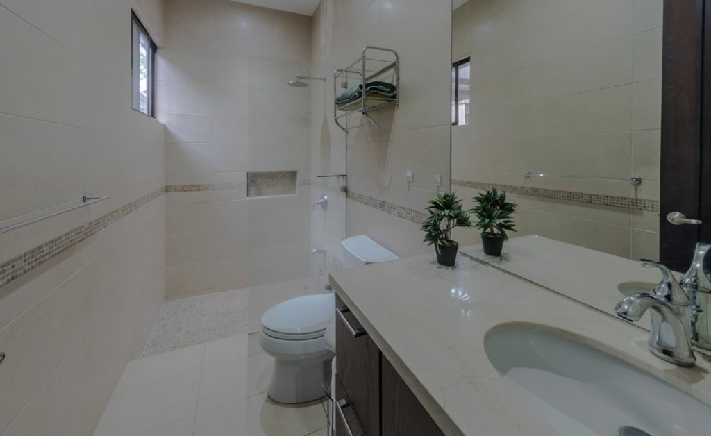 Dispone de tres dormitorios, perfectos para el descanso y la privacidad de la familia. Son realmente amplios, por lo que podrá colocar además de la cama, otros muebles como sofás, escritorios, o elementos decorativos. La habitación principal tiene su baño privado con lavamanos doble y walking closet.