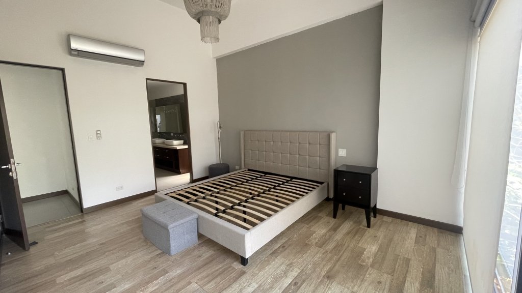 Distribuida en dos niveles, esta propiedad cuenta con un total de tres dormitorios: dos en la planta superior cada uno con su propio baño y perfectos para disfrutar de la privacidad y el confort, y uno en la planta baja, ideal para invitados o como estudio. Las habitaciones son super espaciosas, cuentan con closet, hermosas vistas al exterior, y piso de porcelanato imitación madera con su respectivo rodapié.