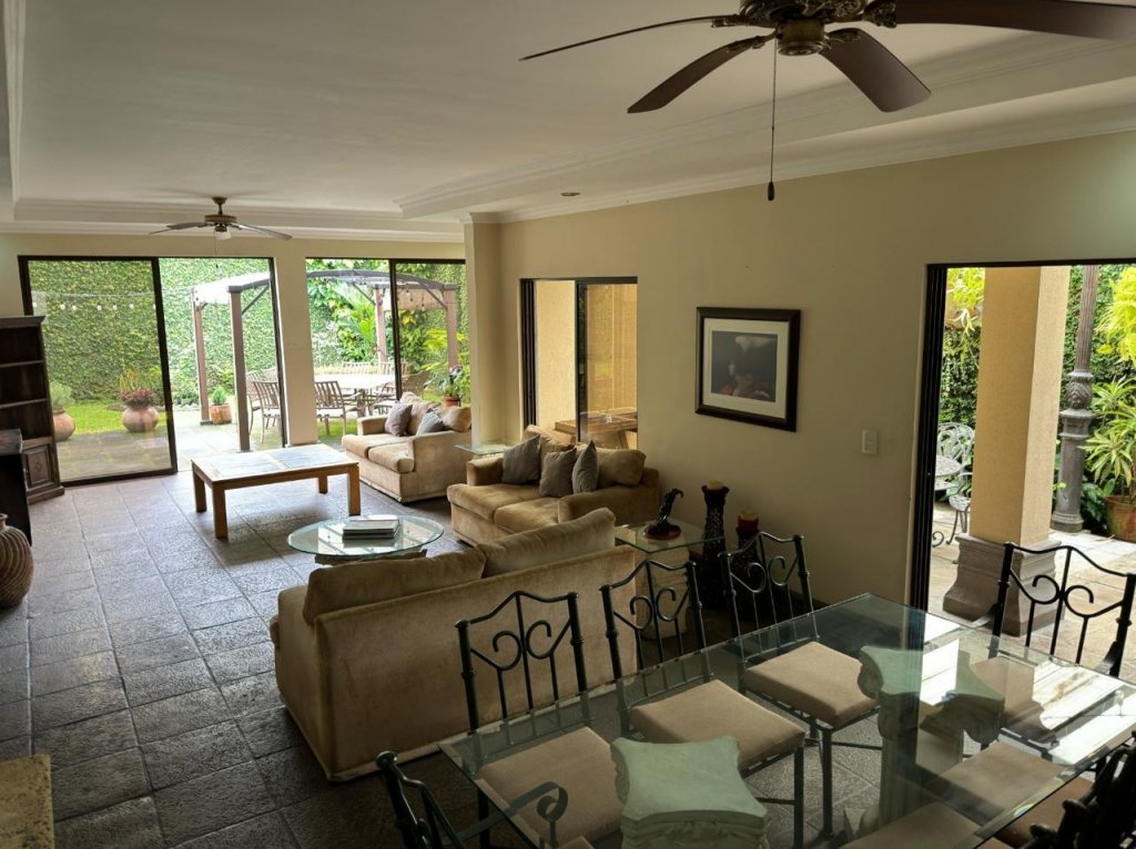 Al ingresar, nos recibe un área social imponente, con sala y comedor integrados, espaciosos y muy iluminados gracias a los amplios ventanales. Seguidamente, la cocina con muebles de madera, sobres de granito y una isla central que funciona como desayunador. Comprar casa en Santa Ana.