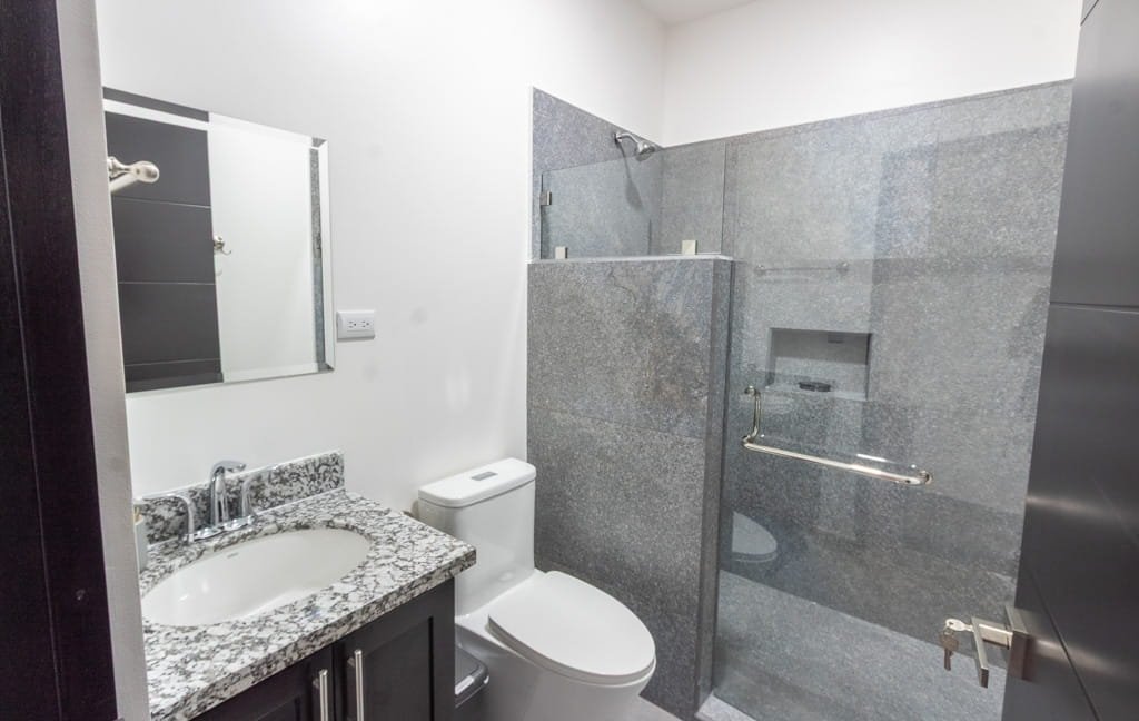 - Mueble de cocina y baños en madera de cedro amargo con sobres de granito.