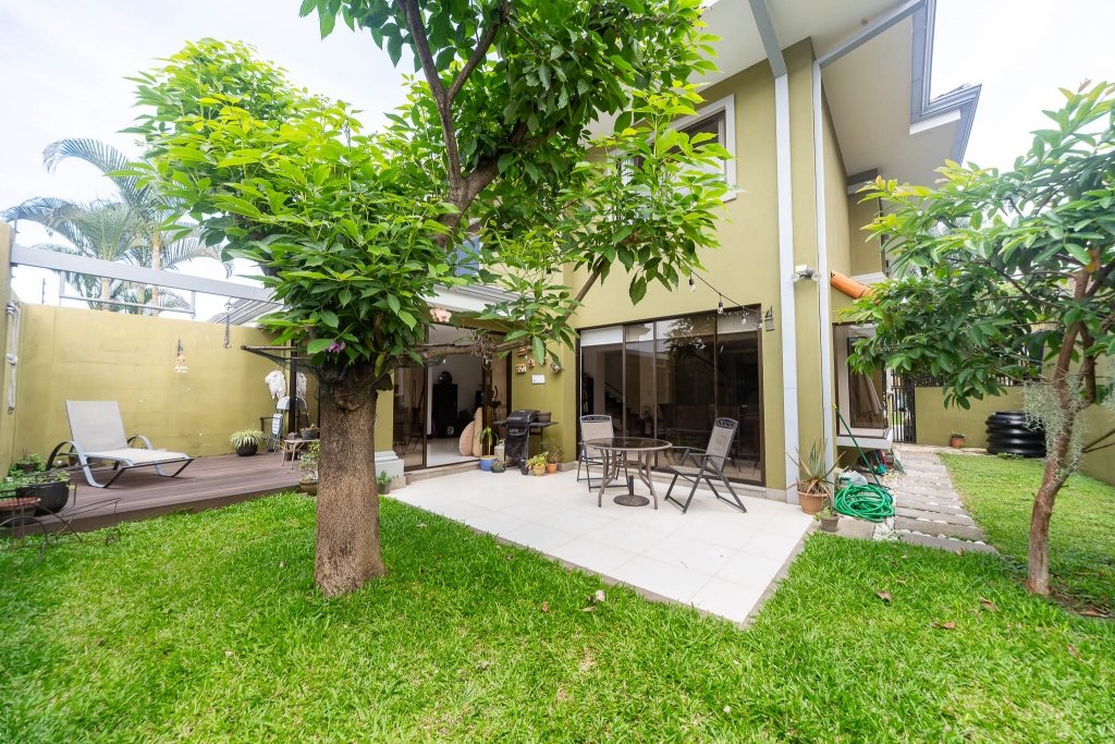 La propiedad cuenta con un terreno de doscientos sesenta metros cuadrados totalmente plano, lo que facilita el aprovechamiento de cada espacio. Uno de sus mayores atractivos es el patio trasero, un rincón encantador con zacate natural y arbustos que se integran con un acogedor deck de madera y una terraza amplia. Este espacio es ideal para instalar una parrilla y compartir con familiares y amigos, disfrutando de reuniones sociales en un ambiente privado.