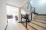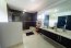 La construcción es de doscientos setenta metros cuadrados distribuidos en dos niveles. Toda la casa luce un piso laminado elegante con un delicado brillo que realza la amplitud de los ambientes. En la primera planta se encuentra un salón principal muy luminoso gracias a grandes ventanales que permiten la entrada de luz natural y crean una conexión fluida con el área exterior. Este salón integra la sala y el comedor, que a su vez se conectan con la cocina.