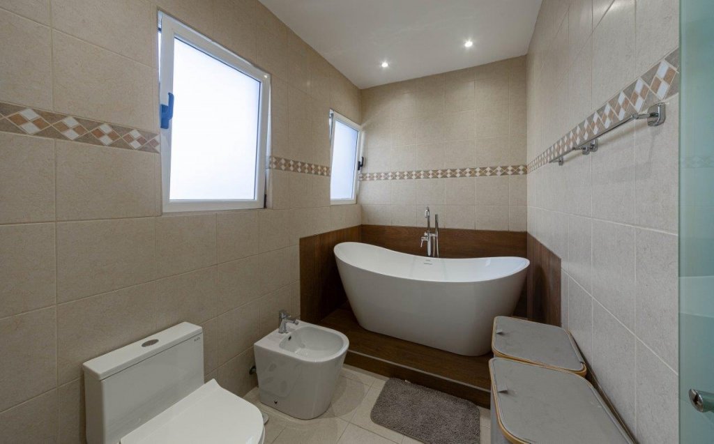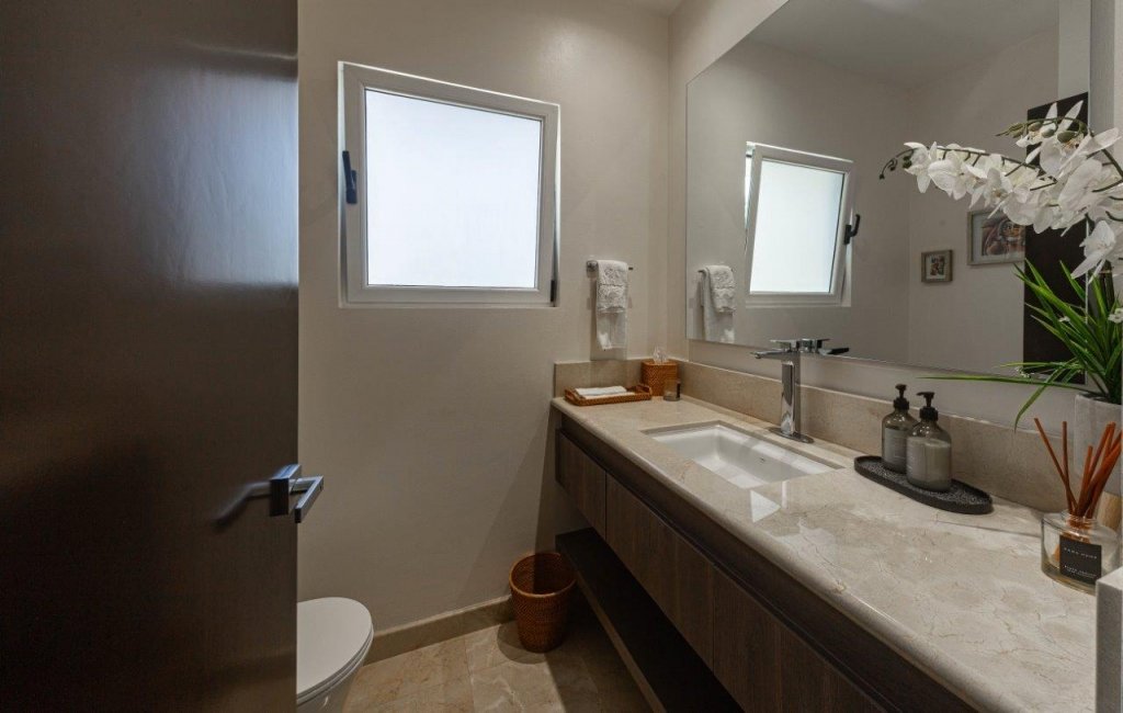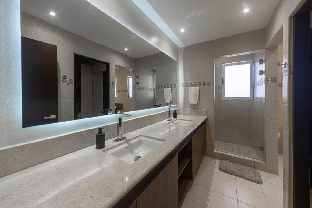 En la planta alta se encuentran cuatro habitaciones, todas con su propio baño, pensadas para brindar privacidad y comodidad a cada miembro de la familia; la principal se distingue por su amplitud y la tina estilo jacuzzi que posee, mientras que algunas de las secundarias cuentan con acceso al balcón.