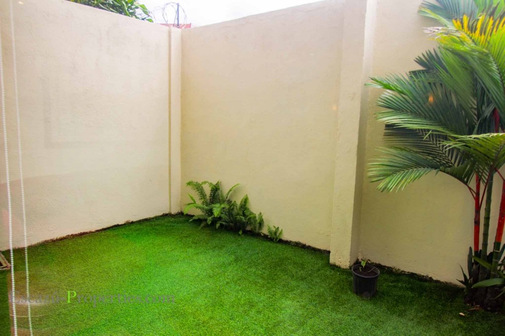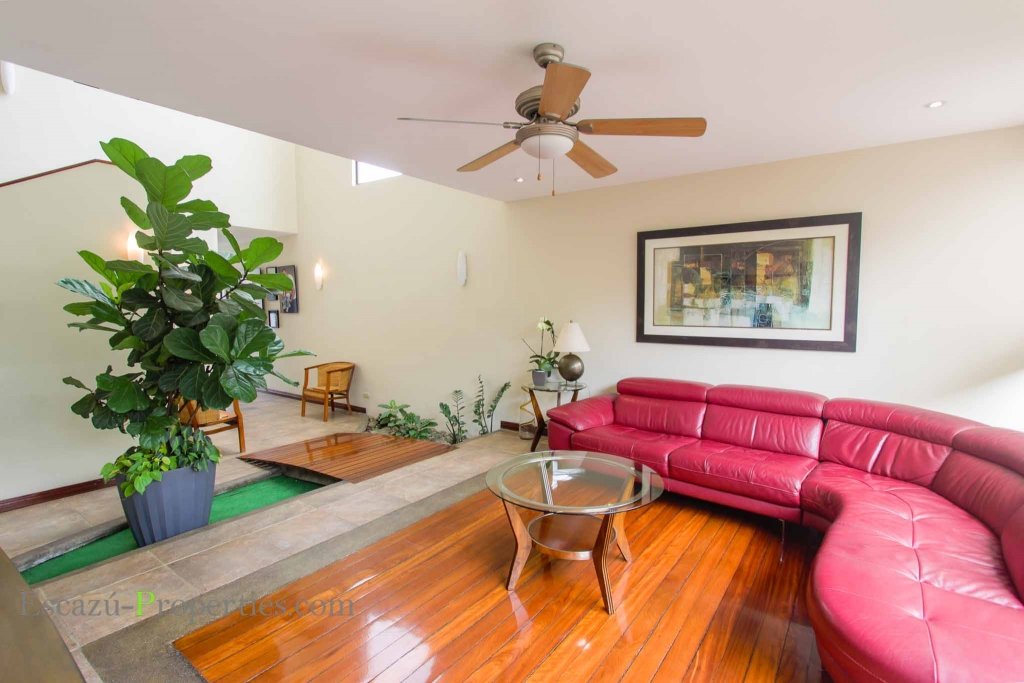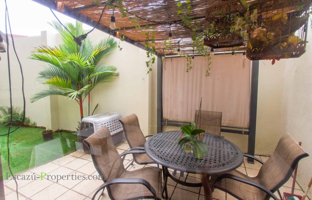 Cuenta con tres dormitorios completos en dos niveles contractivos con las áreas sociales en el primero, cubiertos sus pisos con porcelanato en color crema con incrustaciones en madera sólida que incluyen un puente sobre un pequeño jardín interno. La sala se conecta con un patio trasero que inyecta además ventilación y luz natural al resto de la vivienda y donde encontramos una adorable terraza para tomar el sol o disfrutar una noche fresca.