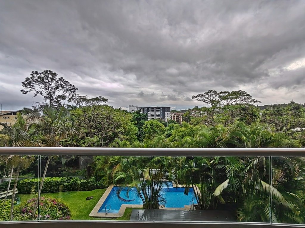 Uno de los grandes atractivos de este hogar es su espacioso balcón privado, que ofrece impresionantes vistas tanto a la piscina del condominio como a la ciudad. Este espacio es ideal para disfrutar de los atardeceres, relajarse en muebles cómodos y organizar parrilladas o veladas al aire libre. La conexión directa entre la cocina y el balcón facilita aún más este tipo de actividades.