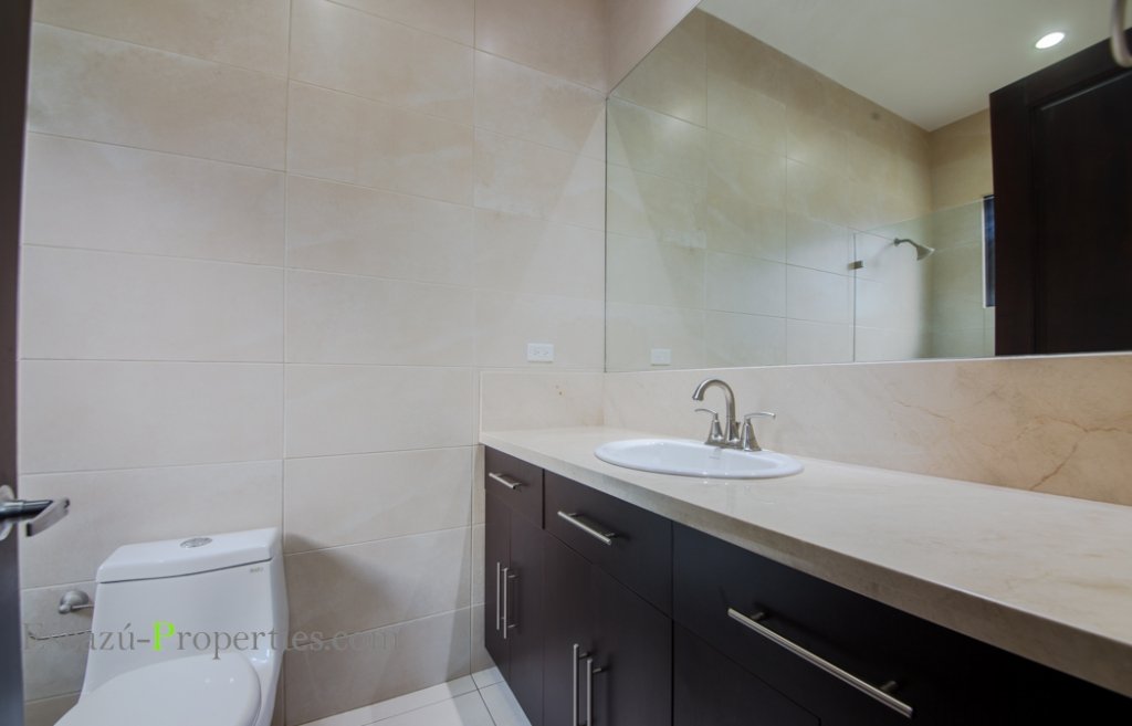 La zona privada alberga tres habitaciones de generosas dimensiones, con suficiente espacio para añadir sofás, escritorios o elementos decorativos. La habitación principal cuenta con con baño privado, doble lavabo y una tina tipo jacuzzi que invita al descanso. Todas las habitaciones lucen un piso de madera impecable, que aporta calidez, elegancia y una sensación hogareña única.
