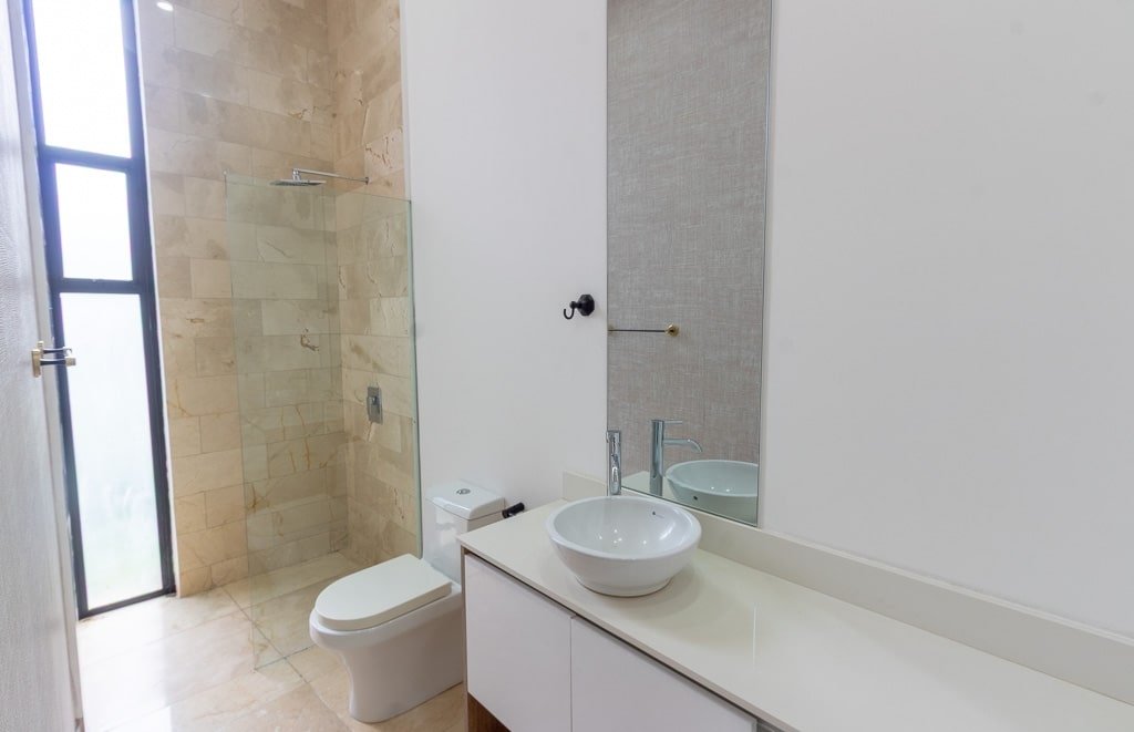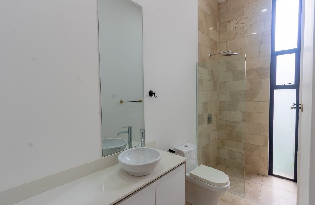 Esta casa, dispone de tres amplias habitaciones, dos de ellas con su baño privado.