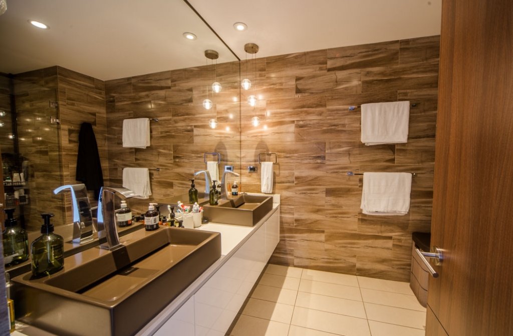 Los baños están equipados con fregaderos y grifería de diseño innovador, combinando funcionalidad con detalles estéticos de gran belleza.