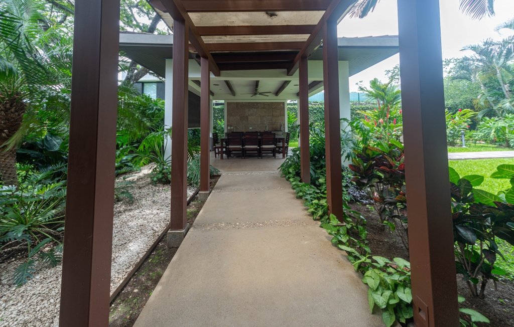 En el corazón del terreno se encuentra una residencia de quinientos noventa metros cuadrados distribuidos en dos niveles, de construcción reciente, con un diseño moderno, funcional y estéticamente impecable.