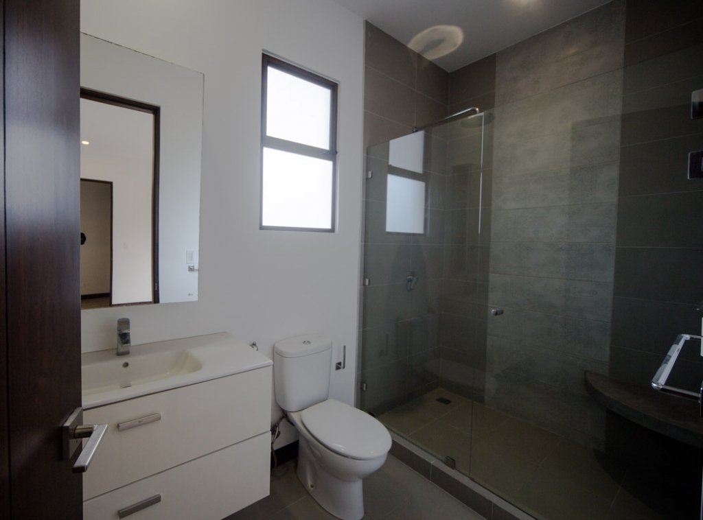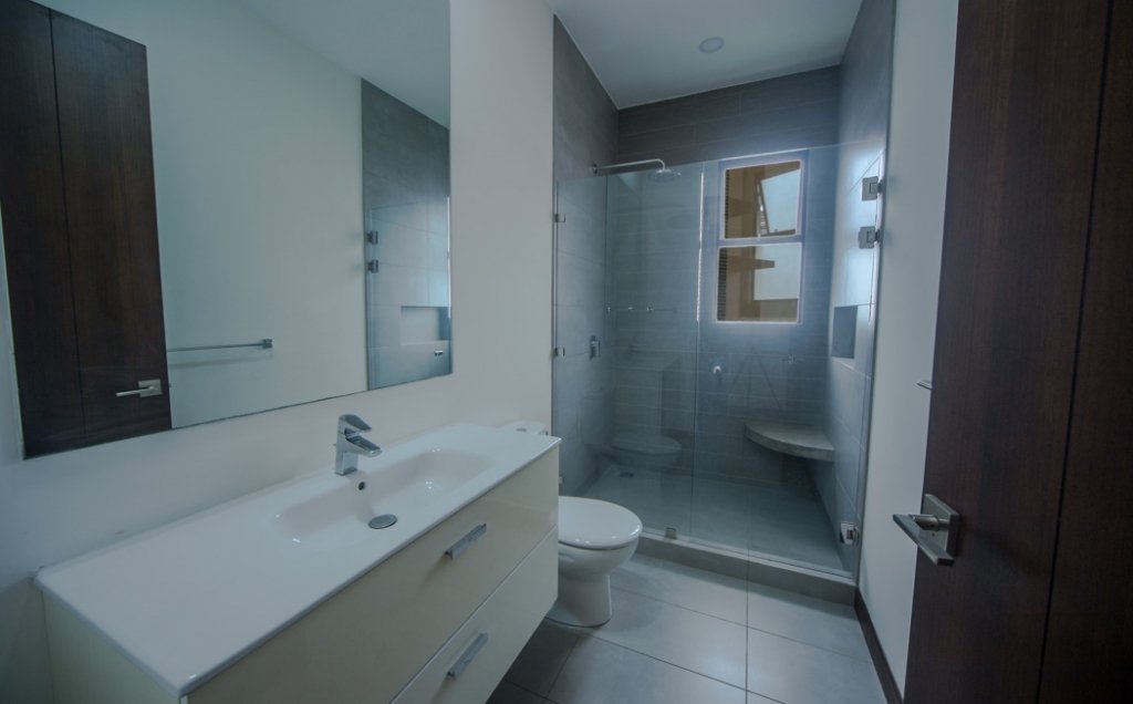 En la segunda planta se ubican cinco habitaciones, algunas con su baño propio. La habitación principal cuenta con acceso a un balcón privado, ideal para apreciar los hermosos atardeceres o relajarse con un buen libro. Todos los baños están equipados con grifería moderna, muebles y lavamanos suspendidos, mamparas de vidrio y espejos a la medida, brindando una experiencia de confort y diseño contemporáneo.