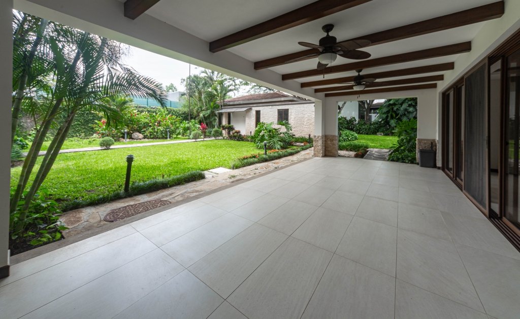 La propiedad cuenta con un terreno espectacular de mil setecientos dieciséis metros cuadrados, completamente plano, cubierto de zacate natural, con frondosos árboles y delicados arbustos que embellecen el entorno, brindando una sensación de frescura, privacidad y belleza escénica verdaderamente excepcional. Propiedades Santa Ana