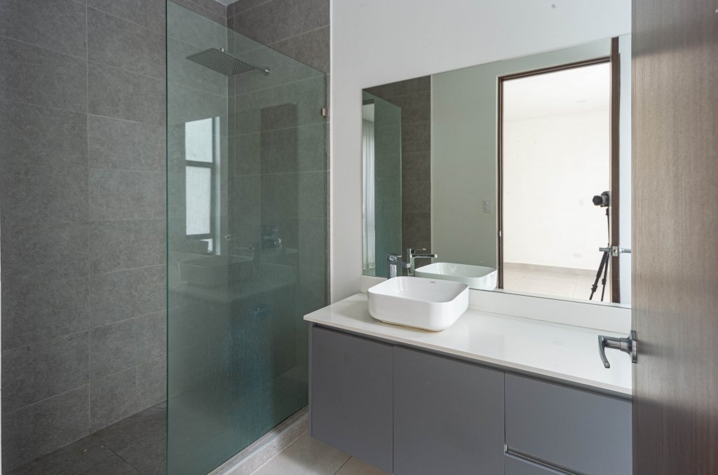 Al subir al segundo nivel se encuentran tres habitaciones muy espaciosas, todas lo suficientemente amplias como para acomodar no solo la cama principal sino también sofás, escritorios o mobiliario auxiliar. Las habitaciones comparten un lobby que puede funcionar como sala de televisión o espacio de lectura. La habitación principal destaca por su baño propio con doble lavamanos, lo que añade un toque de lujo y tranquilidad para quienes buscan privacidad.