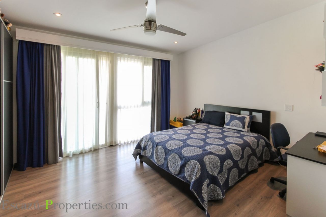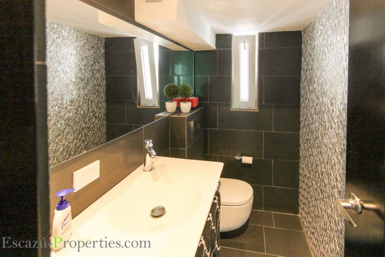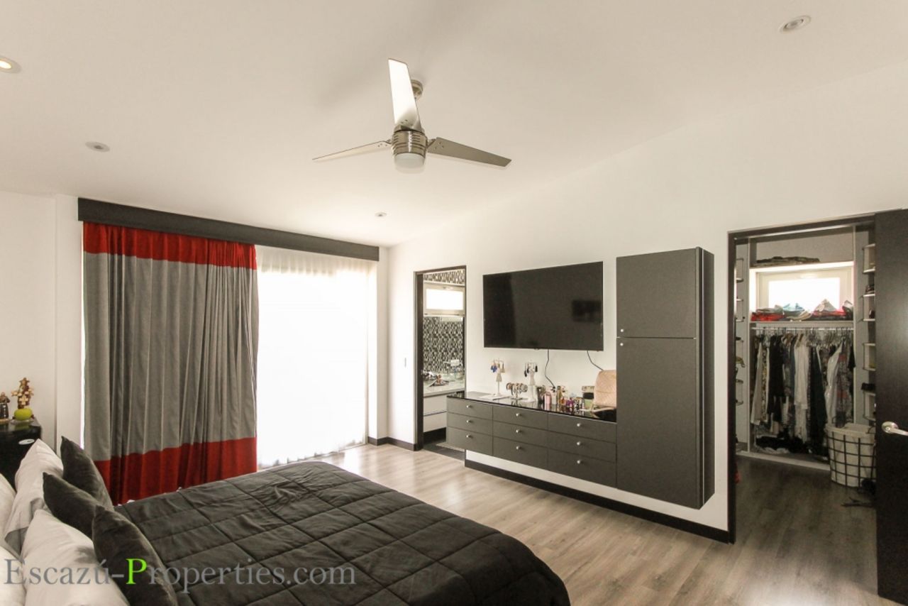 Este esta casa en escazu estilo moderno esta nuevo, en el primer piso tiene sala-comedor amplia e iluminada, cocina con sobres de Cuarzo, amplio jardín y terraza, en el segundo piso tiene tres dormitorios cada uno con su baño, área de tv con cielos altos. El Master bedroom es grande, baño principal enchapado en porcelanato. El condominio ofrece casa club con piscina, está muy cerca de centros comerciales y colegios