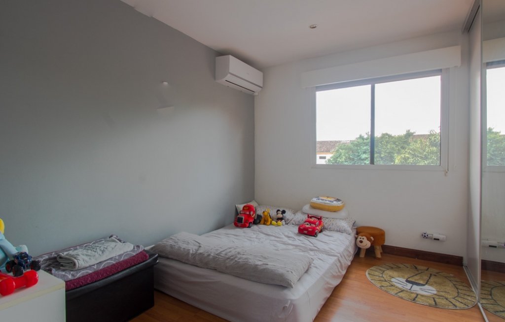 En el segundo piso se encuentran tres acogedoras habitaciones, todas con piso laminado tipo madera, que aporta mucha calidez. La habitación principal incluye su propio baño y un espacio adicional perfecto para oficina o estudio, ideal para quienes trabajan desde casa y buscan un entorno silencioso y privado.