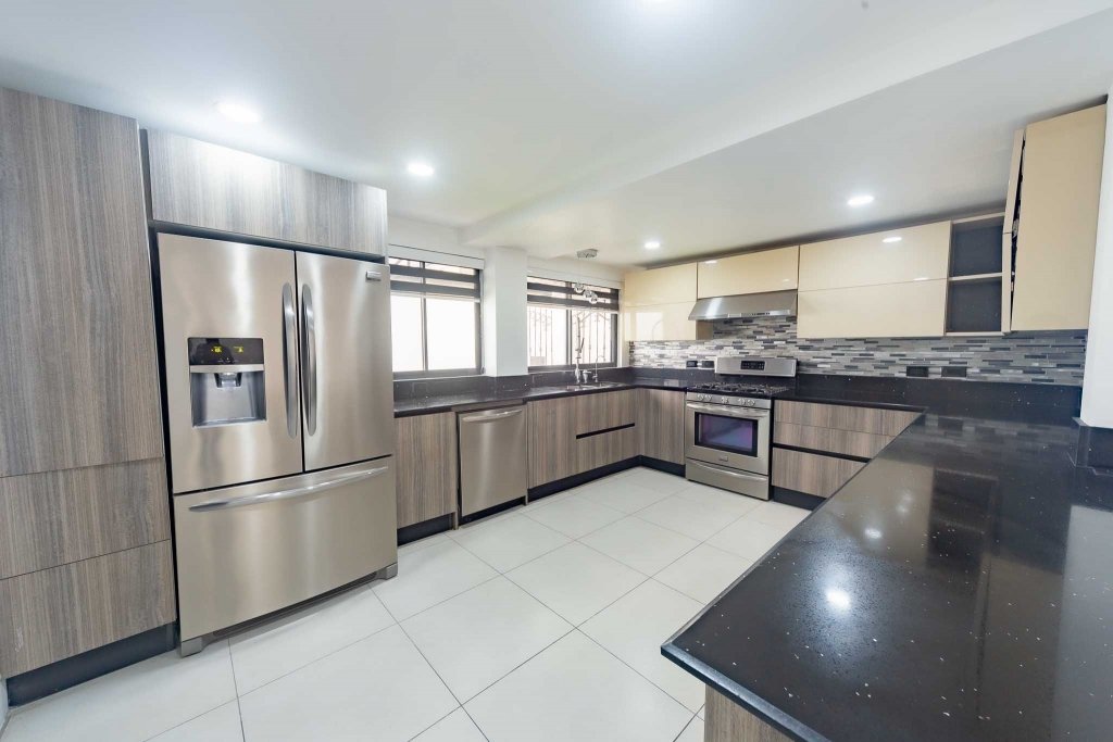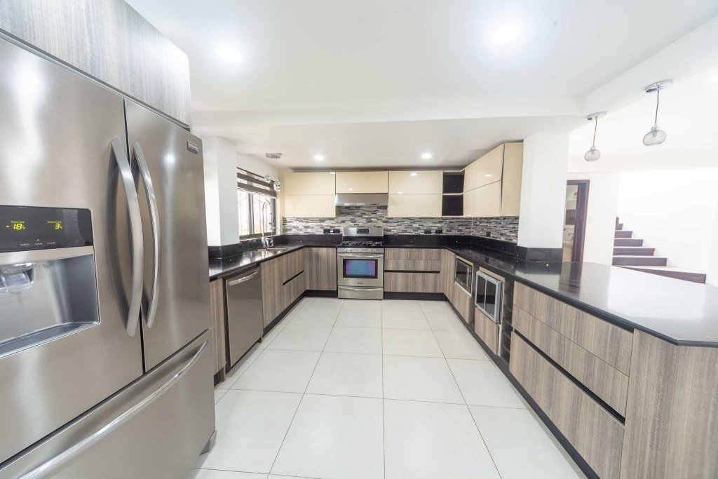 La cocina, amplia y moderna, es un verdadero sueño para quienes disfrutan del arte culinario. Está equipada con muebles de almacenamiento, y una funcional isla que sirve como desayunador.