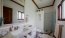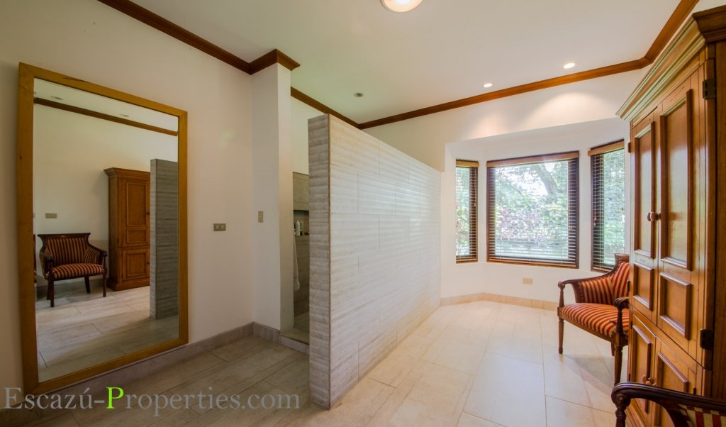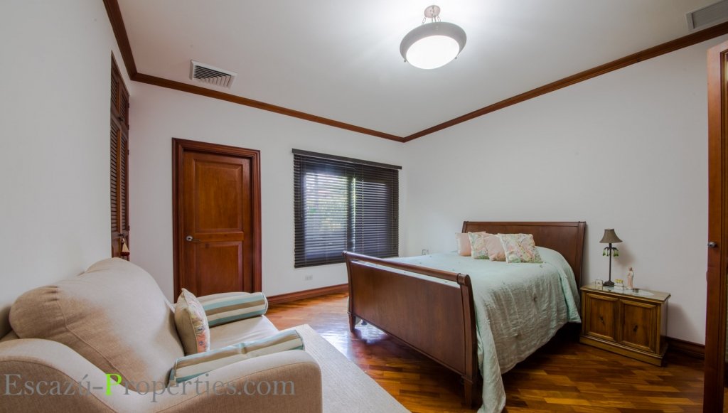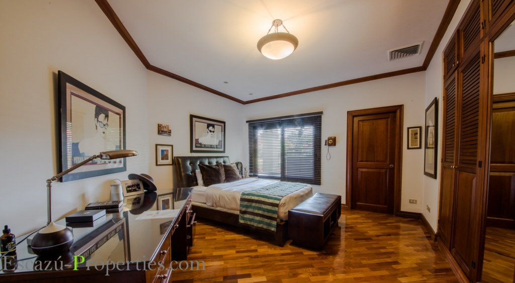 Un ala de la vivienda alberga los 4 dormitorios, muy amplios y súper bien equipados, dos con su propio baño. Los pisos muy cálidos, artesanados en tablillas de madera, también de madera las puertas, rodapiés y closets. Unidad de aire central de aire acondicionado con controles separados para cada habitación.